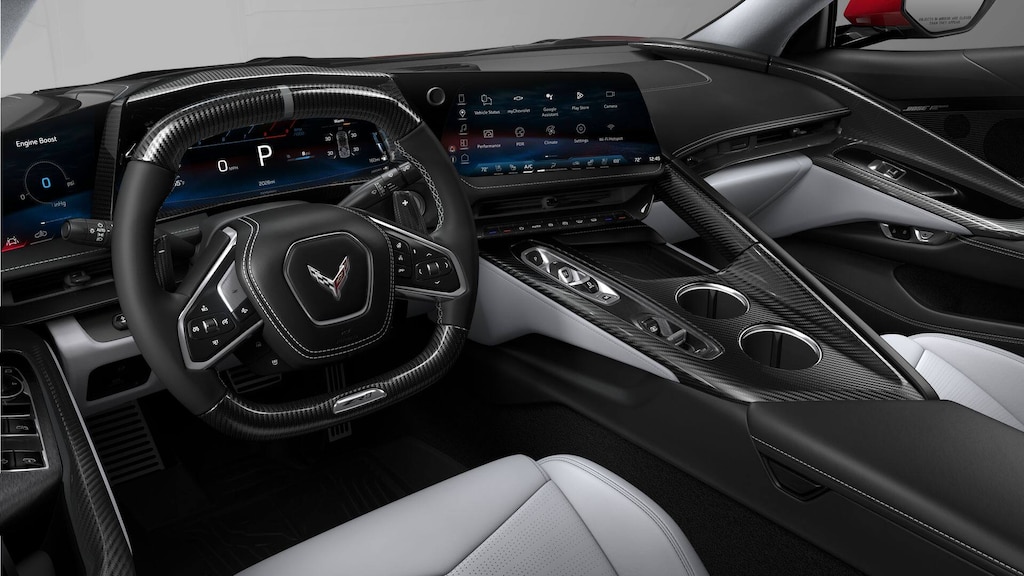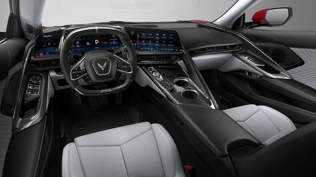 2026 Chevrolet Corvette ZR1 Mist RWD 8-Speed Dual Clutch 5.5L V814 Speakers, 2 Cargo Nets, 4-Wheel Disc Brakes, 8-Way Power Driver Seat Adjuster, 8-Way Power Passenger Seat Adjuster, ABS brakes, Adaptive suspension, Air Conditioning, Alloy wheels, AM/FM radio: SiriusXM, Auto High-beam Headlights, Auto-dimming door mirrors, Auto-dimming Rear-View mirror, Automatic temperature control, Bose Performance Series Sound System with 14 Speakers, Brake assist, Bumpers: body-color, Ceramic disc brakes: front and rear, Compass, Convertible HardTop, Convertible roof lining, Custom Leather Wrapped Interior Package, Delay-off headlights, Driver door bin, Driver Power Bolster Seat Adjuster, Driver vanity mirror, Dual front impact airbags, Dual front side impact airbags, Electrical Theft Deterrent System, Electronic Stability Control, Emergency communication system: OnStar and Chevrolet connected services capable, Exterior Parking Camera Rear, Four wheel independent suspension, Front anti-roll bar, Front Bucket Seats, Front Center Armrest, Front dual zone A/C, Front reading lights, Fully automatic headlights, Garage door transmitter, Glass rear window, GT2 Bucket Seats, HD Front and Rear Vision Cameras, Heads-Up Display, Heated and Vented Driver and Passenger Seats, Heated door mirrors, Heated front seats, Heated Steering Wheel, Heated steering wheel, Illuminated entry, Integrated roll-over protection, Leather Shift Knob, Leather steering wheel, Low tire pressure warning, Memory Driver and Passenger Convenience Package, Memory seat, Napa Leather Seating Surfaces with Perforated Inserts, Navigation System, Occupant sensing airbag, Outside temperature display, Overhead console, Panic alarm, Passenger door bin, Passenger Power Bolster Seat Adjuster, Passenger vanity mirror, Power convertible roof, Power door mirrors, Power Driver Lumbar Control Seat Adjuster, Power driver seat, Power Passenger Lumbar Control Seat Adjuster, Power passenger seat, Power steering, Power windows, Power-Adjustable Outside Heated Mirrors, Premium audio system: Chevrolet Infotainment 3 Premium, Radio data system, Radio: Infotainment System with Google Built-in, Rear anti-roll bar, Rear Cross Traffic Alert, Rear window defroster, Remote keyless entry, Security system, Side Blind Zone Alert, Speed control, Speed-sensing steering, Spoiler, Sport steering wheel, Steering wheel memory, Steering wheel mounted audio controls, Sueded Microfiber-Wrapped Upper Interior Trim Package, Tachometer, Telescoping steering wheel, Tilt steering wheel, Traction control, Trip computer, Turn signal indicator mirrors, Universal Home Remote, Variably intermittent wipers, Vehicle Inclination Theft Deterrent Sensor, Vehicle Interior Movement Theft Deterrent Sensor, Ventilated front seats, Voltmeter, Wheels: 20 x 10 Front and 21 x 13 Rear Sterling Silver, Wireless Phone Charging.