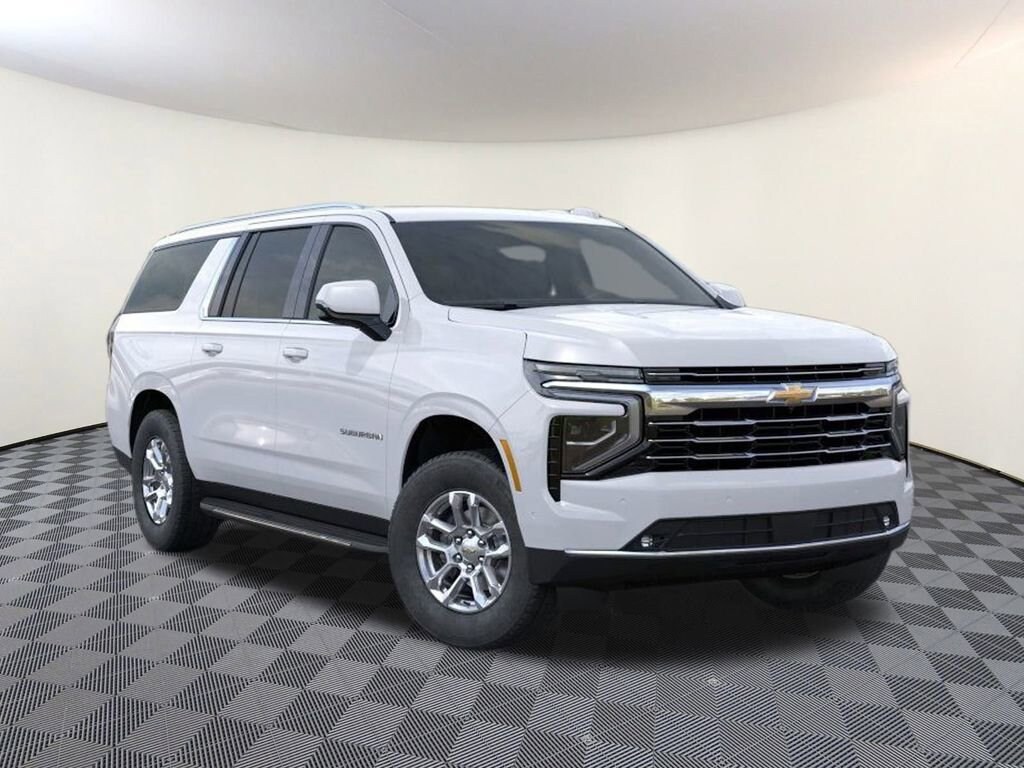 Summit White 2026 Chevrolet Suburban LT 4WD 10-Speed Automatic with Overdrive EcoTec3 5.3L V8 2-Speed Active Electronic AutoTrac Transfer Case, 2-Way Driver Power Lumbar Seat Adjuster, 2-Way Front Passenger Power Lumbar Seat Adjuster, 2nd Row Power Release 60/40 Split-Folding Bench Seat, 3.23 Rear Axle Ratio, 3rd Row 60/40 Power-Folding Split-Bench, 3rd row seats: split-bench, 4-Wheel Disc Brakes, 6 Speakers, 6-Speaker Audio System, 8-Way Power Driver Seat Adjuster, 8-Way Power Front Passenger Seat Adjuster, ABS brakes, Advanced Trailering Package, Air Conditioning, Alloy wheels, AM/FM radio: SiriusXM with 360L, Apple CarPlay/Android Auto, Auto High-beam Headlights, Auto-Dimming Inside Rear-View Mirror, Automatic temperature control, Blind Zone Steering Assist with Trailering, Bose 10-Speaker Surround with CenterPoint, Brake assist, Bumpers: body-color, Comfort Package, Compass, Delay-off headlights, Driver door bin, Driver vanity mirror, Dual front impact airbags, Dual front side impact airbags, Electronic Stability Control, Emergency communication system: OnStar Services capable, Engine Block Heater, Exterior Parking Camera Rear, Four wheel independent suspension, Front anti-roll bar, Front Bucket Seats, Front Center Armrest, Front dual zone A/C, Front LED Fog Lamps, Front reading lights, Fully automatic headlights, Heated 2nd Row Outboard Seats, Heated door mirrors, Heated Driver and Front Passenger Seats, Heated front seats, Heated Power-Adjustable Outside Mirrors, Heated Steering Wheel, Hill Descent Control, Hitch View with Pan/Zoom Image Adjustment, Illuminated entry, Integrated Trailer Brake Controller, Interior Camera, Leather-Appointed Seating, LED Headlamps with LED Daytime Running Lamps, LED Tail Lamps, Low tire pressure warning, Luxury Package, Max Trailering Package, Memory seat, Memory Settings, Memory Settings For Driver, Navigation system: Google built-in compatibility (select service plan required, terms and limitations apply), Occupant sensing airbag, Outside temperature display, Overhead airbag, Overhead console, Panic alarm, Passenger door bin, Passenger vanity mirror, Power door mirrors, Power driver seat, Power Liftgate, Power passenger seat, Power Release 2nd Row Bucket Seats, Power steering, Power windows, Premium Smooth Ride Suspension, Radio data system, Radio: 17.7 Diagonal Advanced Color LCD Display, Rain sensing wipers, Rear air conditioning, Rear anti-roll bar, Rear Power Liftgate, Rear reading lights, Rear seat center armrest, Rear window defroster, Rear window wiper, Remote keyless entry, Security system, SiriusXM with 360L Trial Subscription, Smart Trailer Integration Indicator, Speed control, Speed-sensing steering, Split folding rear seat, Spoiler, Steering wheel mounted audio controls, Tachometer, Telescoping steering wheel, Tilt steering wheel, Traction control, Trip computer, Universal Home Remote, Variably intermittent wipers, Voltmeter, Wheels: 18 x 8.5 Bright Silver Painted Aluminum, Wireless Apple CarPlay/Wireless Android Auto, Wireless Phone Charging.